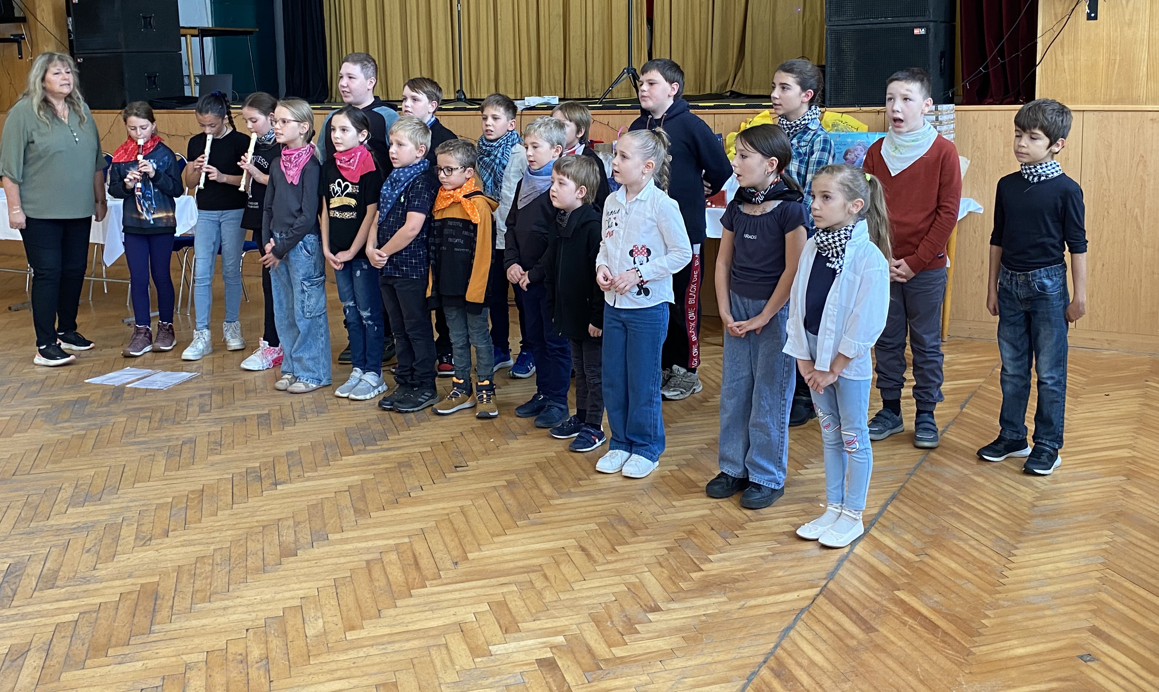Naši malí hudebníci, zpěváci a tanečníci se nezalekli velkého publika a v sobotu všem účastníkům akce “Setkání starší generace” zajistili bohatý kulturní program. Za doprovodu fléten zapívali několik písniček a na závěr vystoupení zatančili i country tanec, který velmi svědomitě nacvičovali ve školní družině. Velké poděkování patří všem žákům, kteří se akce zúčastnili, ale také všem rodičům, kteří své děti na vystoupení doprovodili.