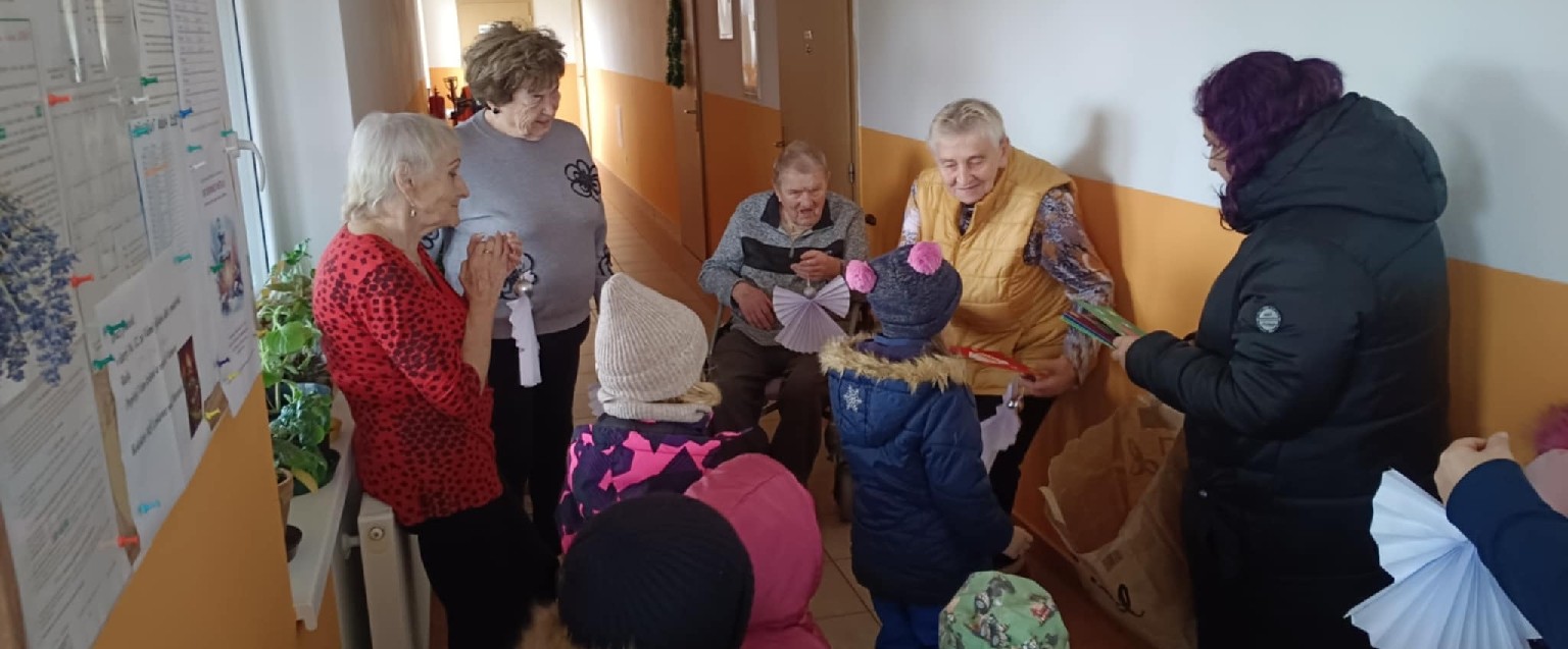 V předvánočním období navštívily děti z naší mateřské školy místní domov seniorů, aby svým vystoupením a drobnými dárky potěšily jeho obyvatele. Setkání proběhlo v příjemné a srdečné atmosféře, která se nesla v duchu blížících se Vánoc.