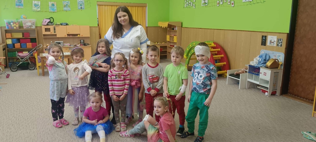 Zdravotní sestřička dětem také vysvětlila, co dělat v případě úrazu – například když si někdo odře koleno nebo se uhodí. A protože jsme v mateřské škole, tak se dětem hned takové drobné fiktivní úrazy staly. Sestřička jim poté „rány“ s velkou trpělivostí a laskavostí ošetřila. Děti tak měly možnost být figuranty a vidět, jak se správně ošetřují.